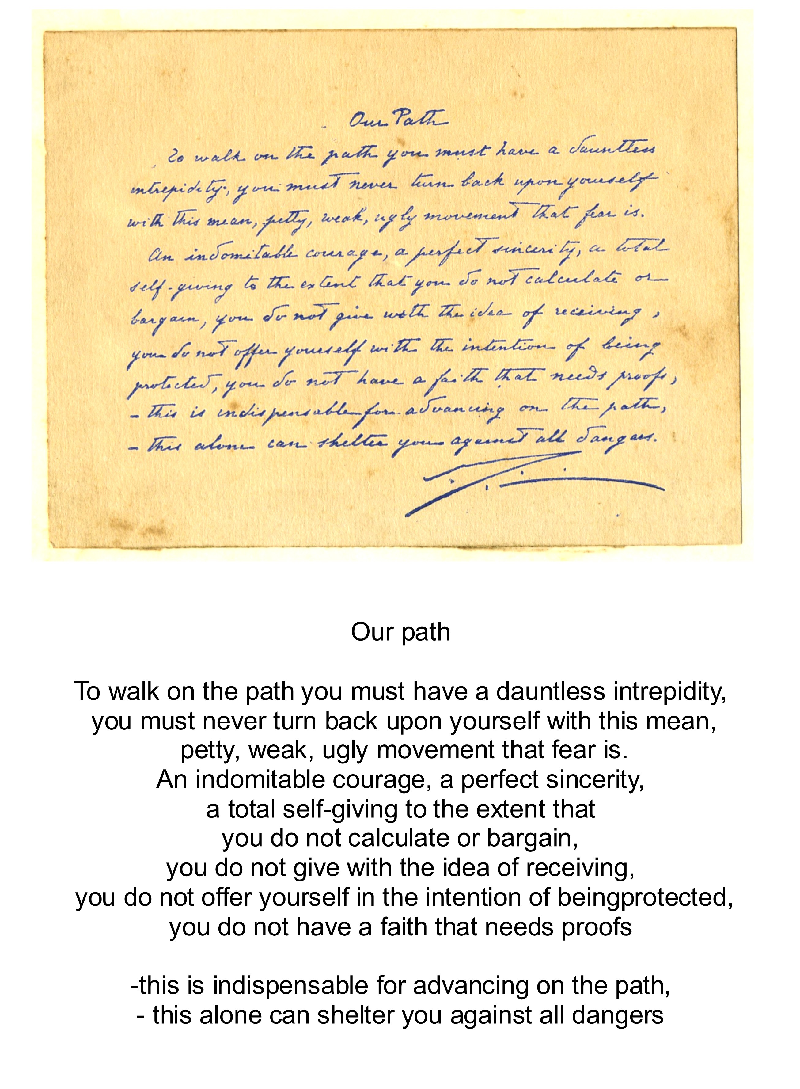 Without shrinking and fear is the royal road to the Divine life,